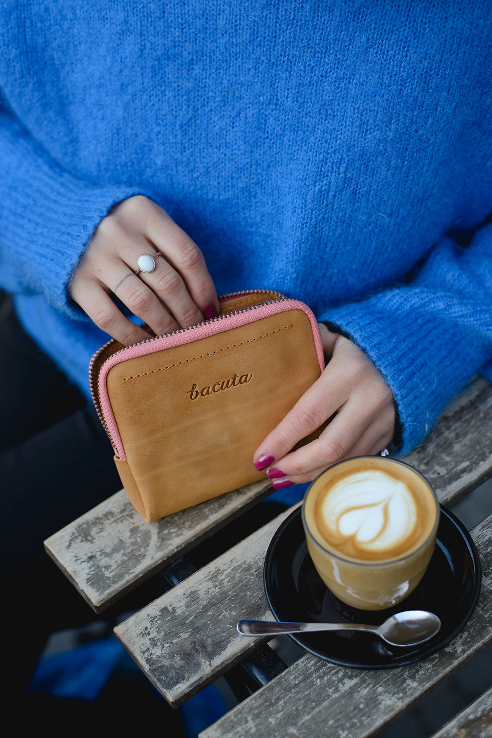 Bezedná peněženka / bílá káva s karamelem